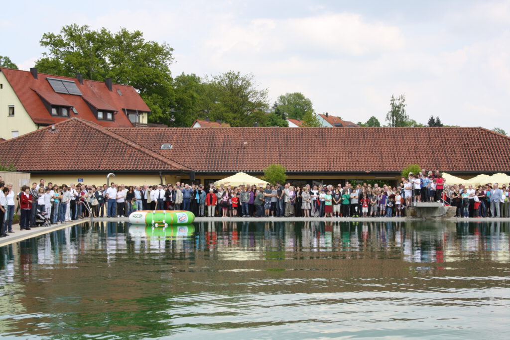 Nach dem großen Umbau des Freibades war es endlich so weit! Am 20.05.2010 öffnete das neue Naturbad in Großhabersdorf seine Pforten. Dieses tolle Ereignis freute uns als “Pfützensannis” natürlich besonders und feierten das am 22.05.2010 gebührend mit unseren Gästen und Partnerstädten bei einem rauschenden Einweihungsfest. Für das leibliche Wohl haben wir natürlich gesorgt und unsere Gäste mit Kaffee und Kuchen sowie Kaltgetränken und Gegrilltem verwöhnt.