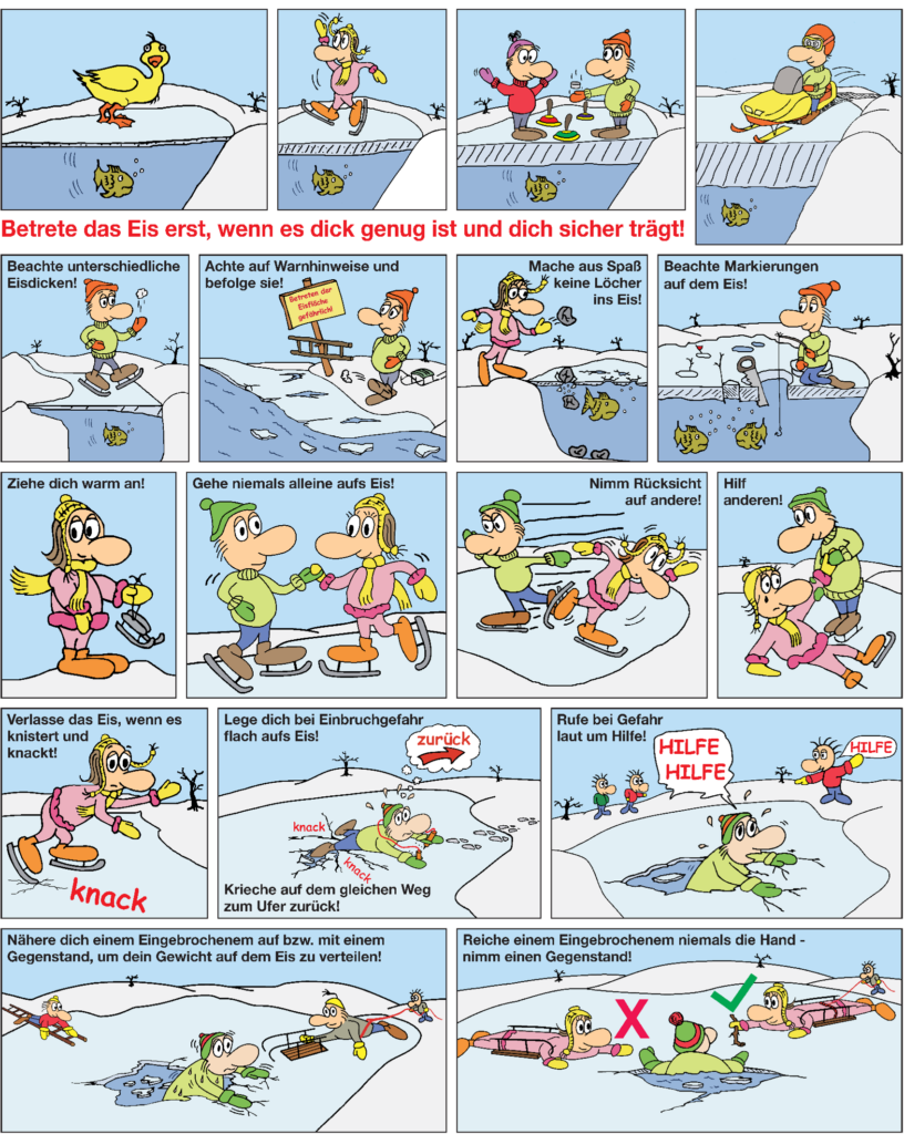 Die Eisregeln liefern euch hier einen guten Anhaltspunkt, damit der winterliche Spaß nicht zum Albtraum wird.