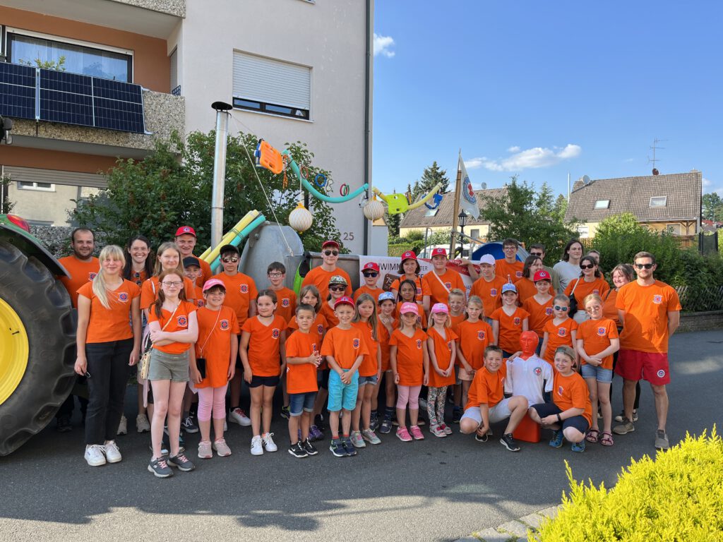 Dazu fand am Samstag, den 17.06.2023 ein Festumzug mit den Vereinen des Ortes und vielen weiteren Feuerwehren statt. Das haben wir uns selbstverständlich nicht entgehen lassen und sind mit Bulldog, Hänger uns Fußgruppe mitgelaufen.