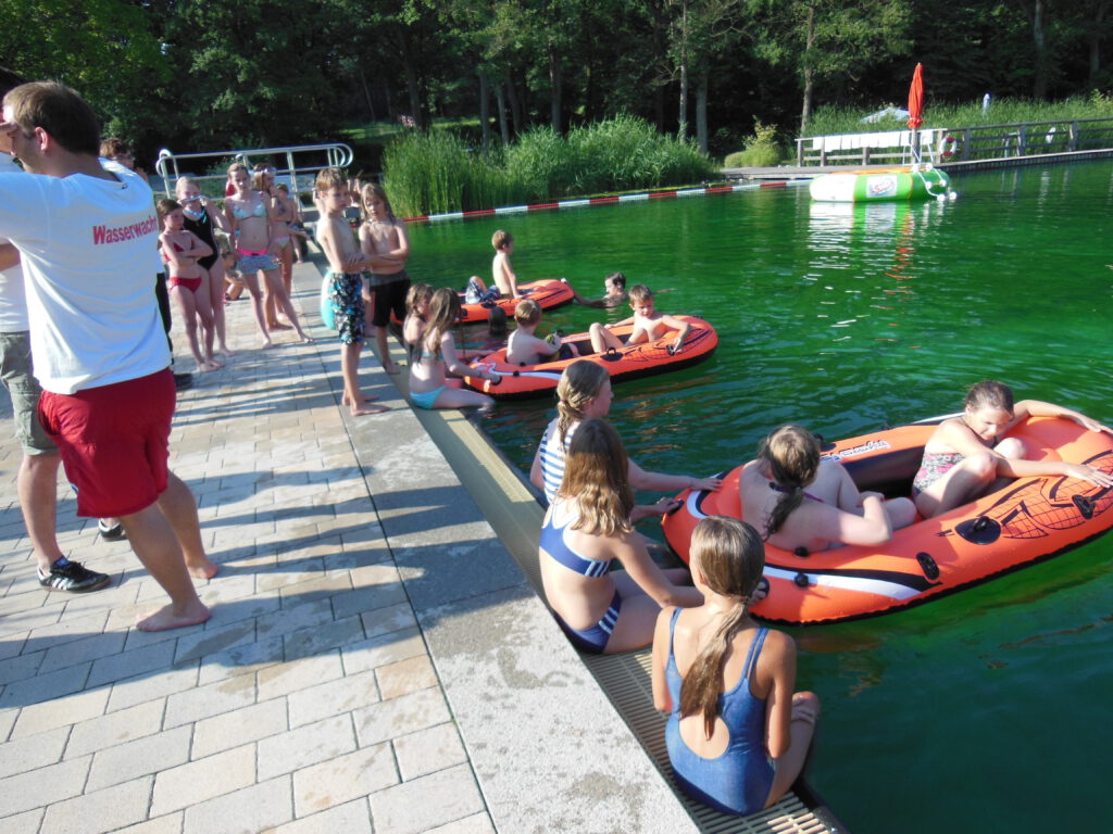 Das Zeltlager fand von Freitag, den 26.07. bis Sonntag, den 28.07.2013 statt. Es war interessant und lustig, da wir uns bei der Dorfrally sehr amüsiert haben. Wir mussten mit Flossen laufen und durch ein Spinnennetz klettern. Die Trainer waren auch sehr nett und drückten auch mal ein Auge zu. Wir befanden uns viel im Wasser und konnten mit Booten paddeln und mit Flossen schwimmen. Es war sehr cool! (Yasemina)