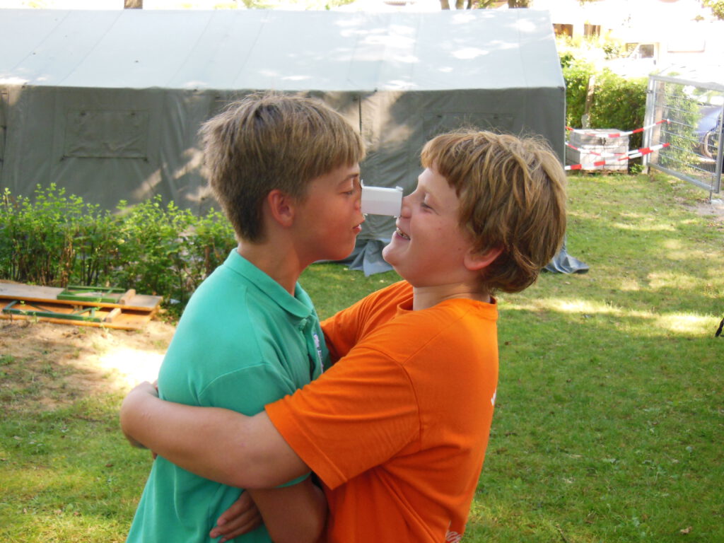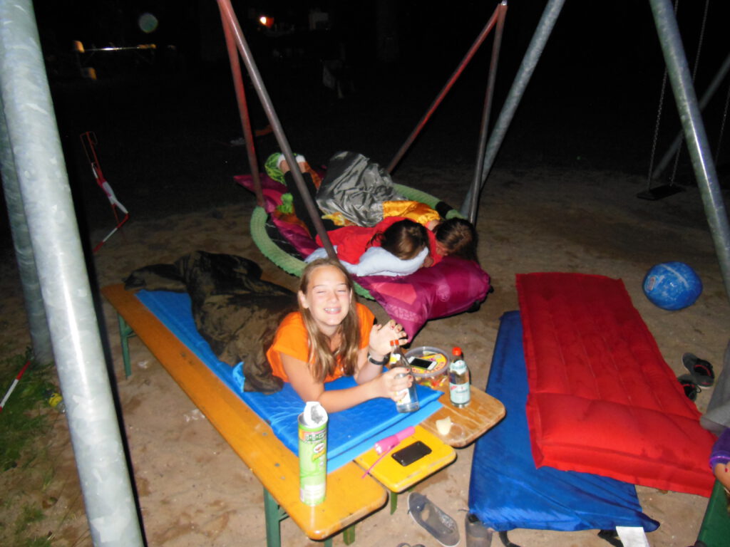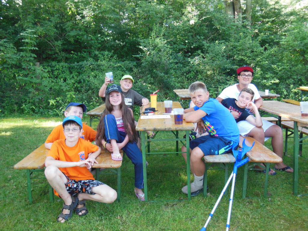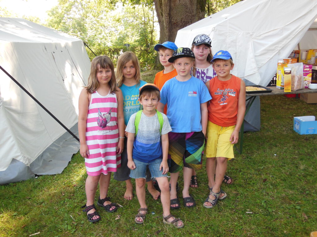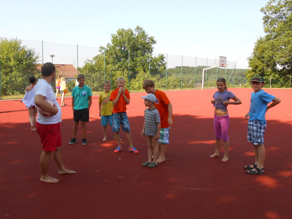 „Die Dorfreli war lustig …. Es gab verschidene Statsjonen: einmal Basketball, das Fußball war (war doof), Nasenpost war lustig, dann mussten wir in die Kneippanlage das war so lustig, danach ging es zum Spienennetz, das war cool; ein Mädchen hat einen Purzelbaum gemacht … (Michelle).