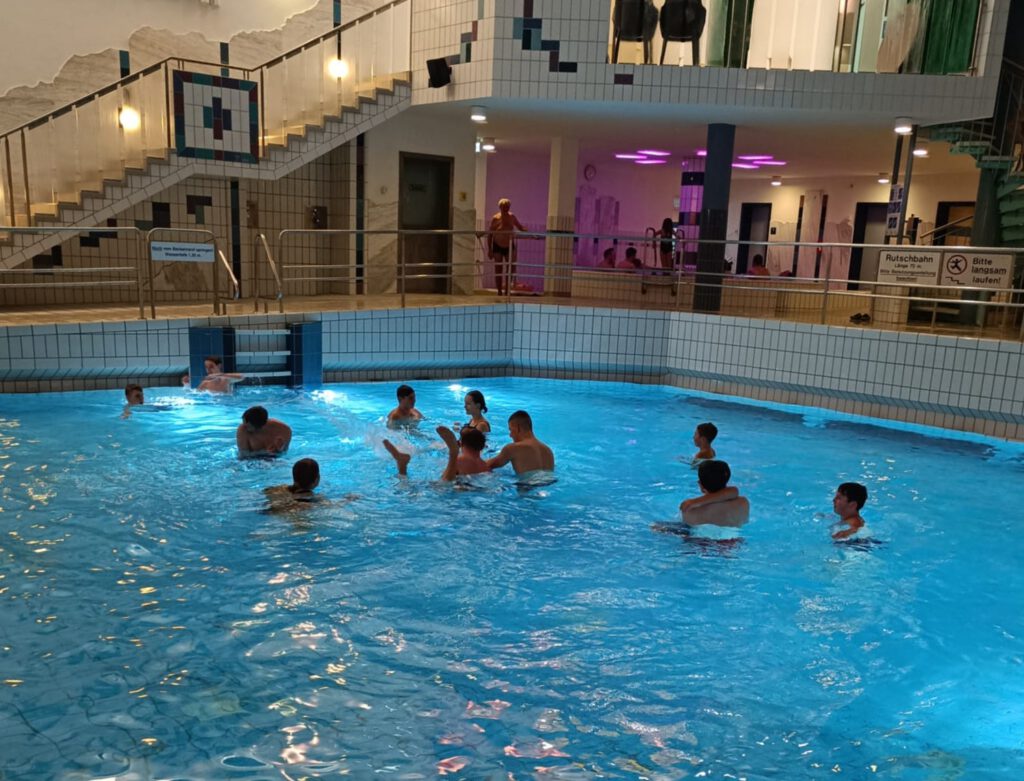 Traditionsgemäß fand Freitag vor Weihnachten wieder unsere Kinder-Weihnachtsfeier statt. Dieses Jahr sind wir mit 75 Kindern und Betreuern ins Spaßbad Aquella nach Ansbach gefahren. Mit Wellenbecken, Whirlpool und Wasserschlacht war es ein gelungener Abend für Groß und Klein!