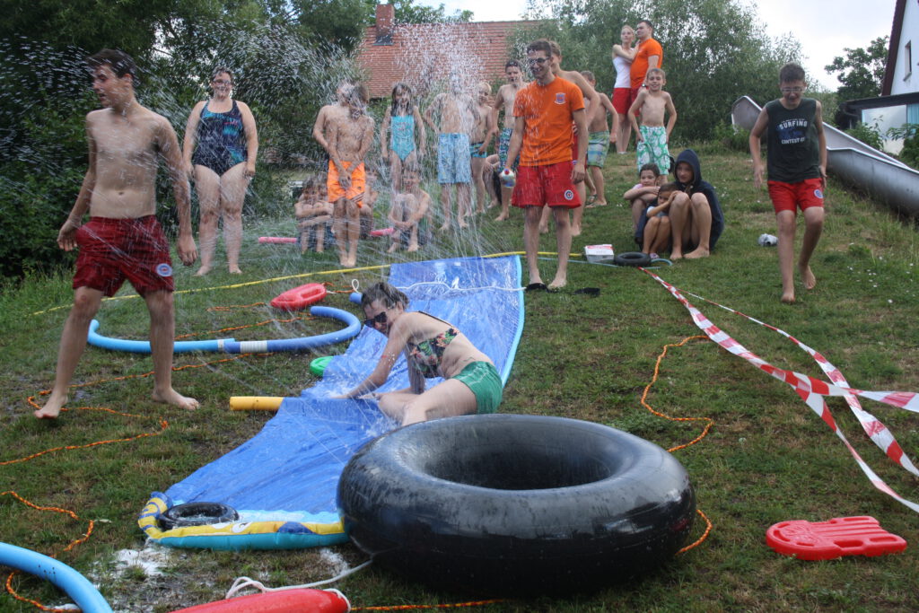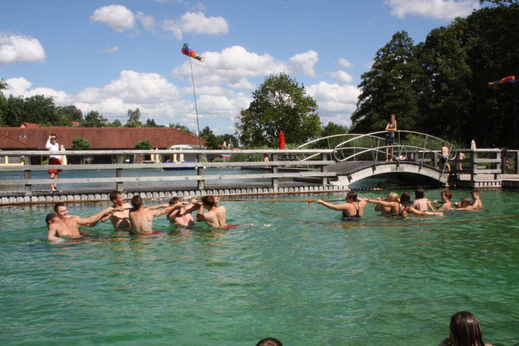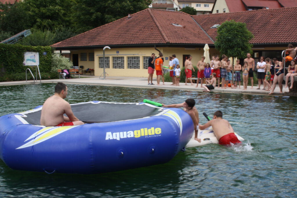 In den folgenden Prüfungen wurden Geschick, Gleichgewicht, Zielgenauigkeit und Durchhaltevermögen sowie die Gruppendynamik auf die Probe gestellt. Der Faktor Spaß wurde natürlich nie vergessen! Abends um 20 Uhr fand dann das große Finale statt. Die Eroberung unserer schwimmenden Festung. Im unerbittlichen Abwehrfeuer der Trainer gelang es den Angreifern nicht die Festung zu bezwingen. Mit viel Wasserspaß und Lachen neigte sich der Tag dem Abend. Sonntag früh endete unser Zeltlager und erstmalig mussten unsere sonst eher aktiven Kids geweckt werden, da sie von den Spielen vom Samstag so kaputt waren (das war uns wirklich noch nie gelungen!).
